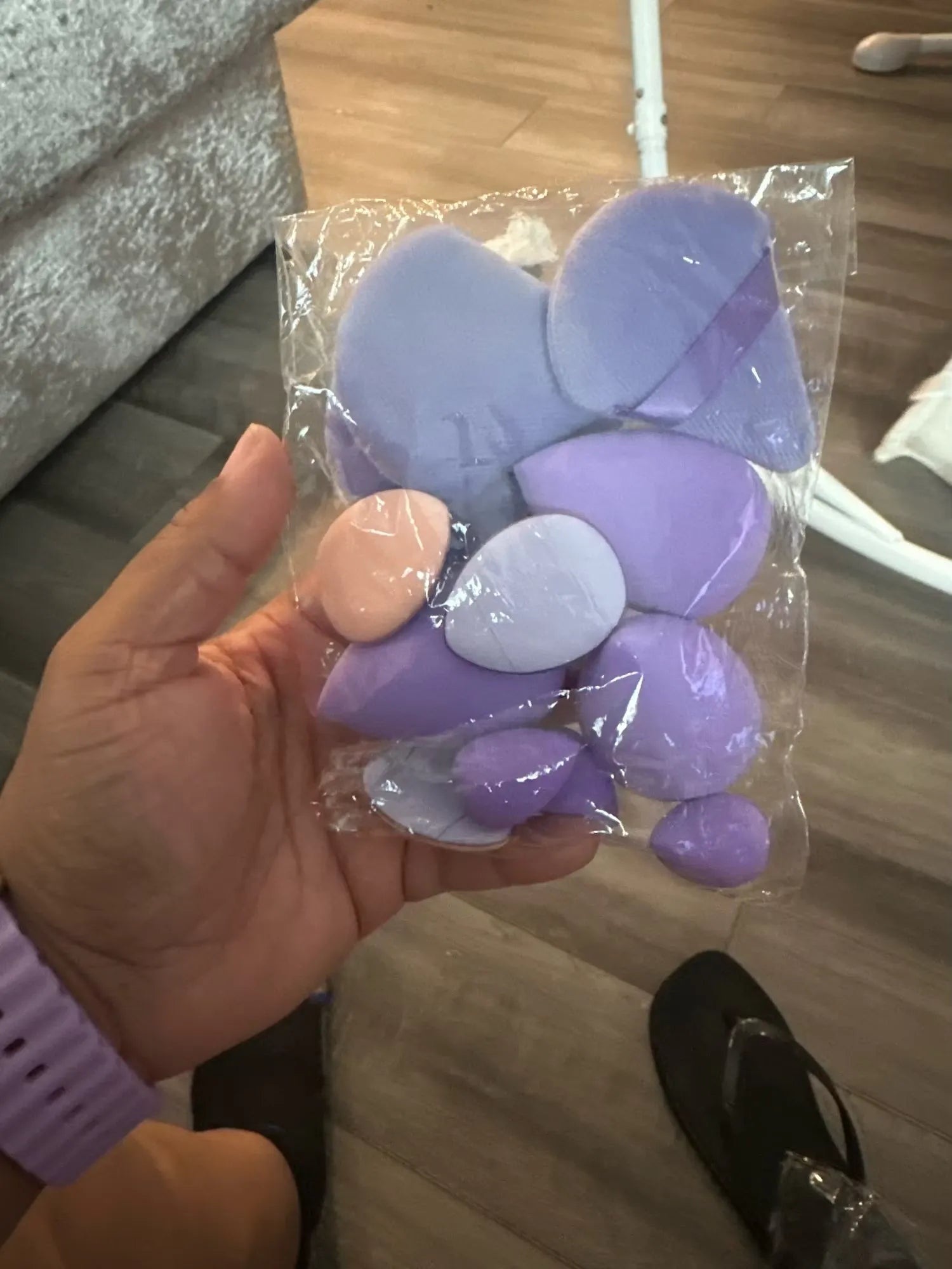 "OMG! These makeup puffs are fab😍. I used them for foundation and powder, and wow, what a difference! My makeup's flawless af all day now. They’re super soft; luv that they’re different sizes for different parts of ur face. Def a makeup game-changer. My friends even noticed how great it looks!"